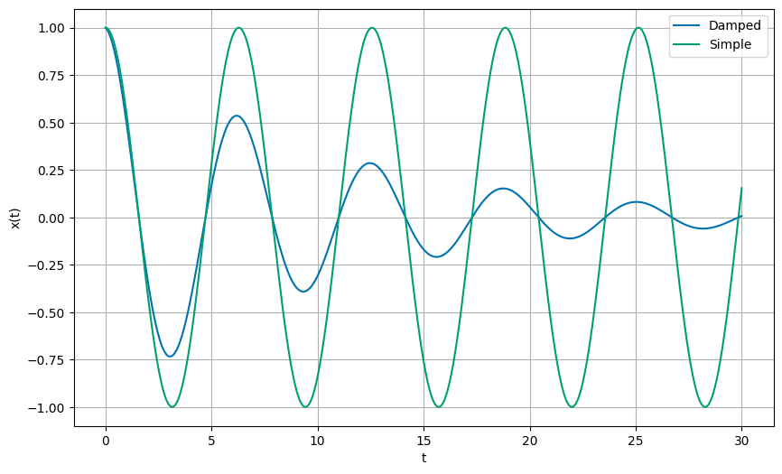 where \(A\) is the amplitude, \(\beta\) is the damping constant, \(\omega_1 = \sqrt{\omega_0^2 - \beta^2}\) and \(\delta\) is the phase.